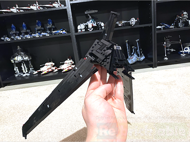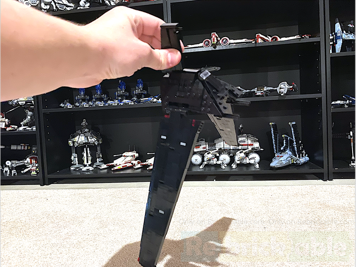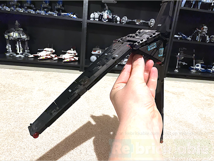 This thing was built tough. The wings use a very sturdy SNOT technique, and even though it’s small, I still managed to fit a Technic skeleton into the center so you can actually pick it up by the top wing, either of the two side wings, or the big wing. Though, I will say, some of the details like the blasters are fairly delicate—rough play will knock them off easily, but if you just want to display it or even swoosh it gently it’ll be perfectly fine…