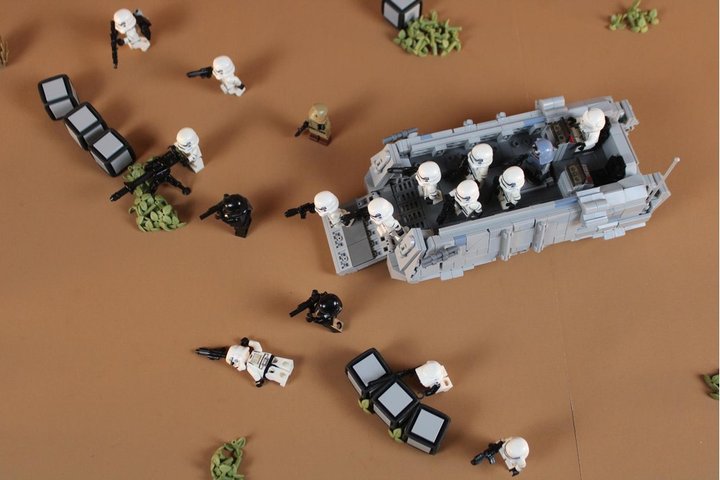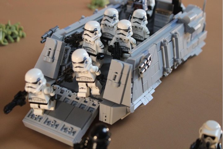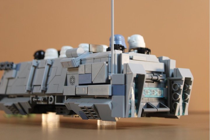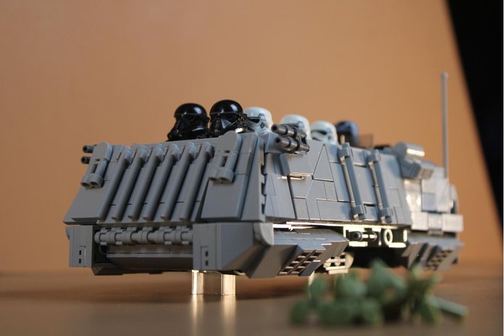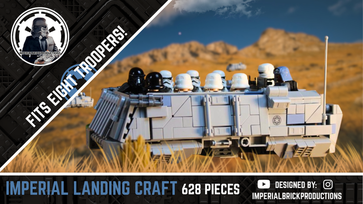 Inspired by the vehicle briefly seen in Episode 3 of Kenobi, during the meeting with the turncoat Imperial Tala and the Allied landing boats of D-Day. This vehicle can hold 8 troopers, 1 pilot, and 1 officer, and can deploy them onto beachfronts or urban centers!
