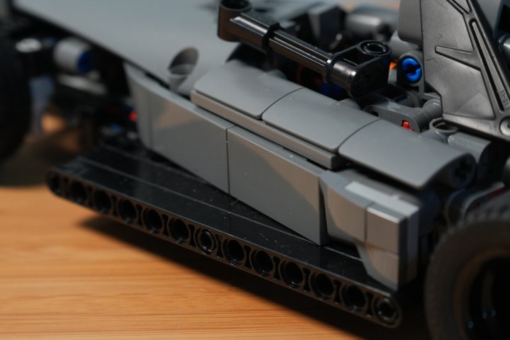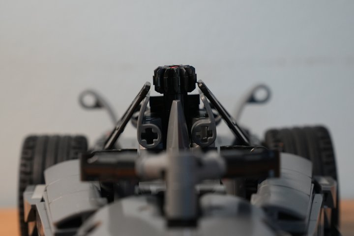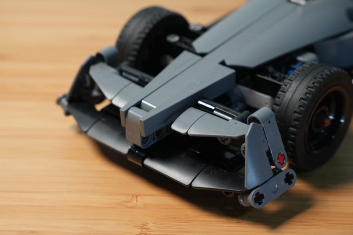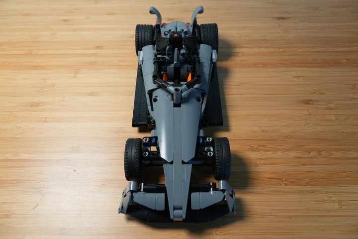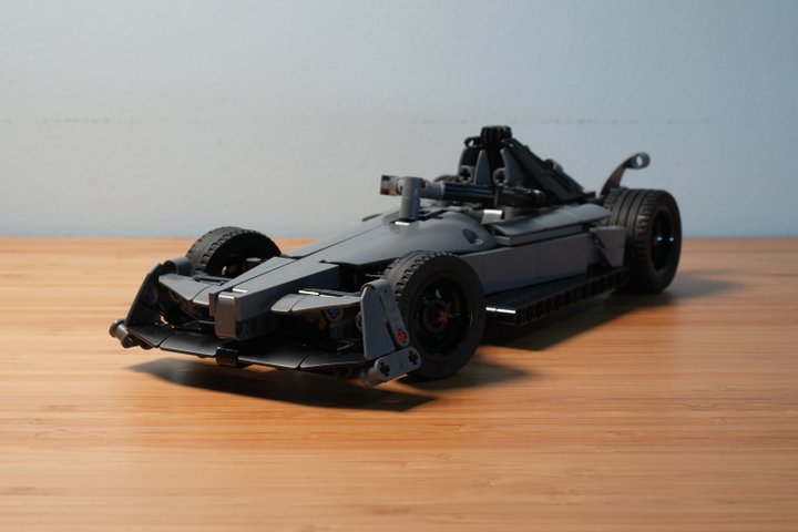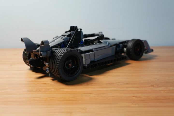 This is my model of a Formula E car built using only parts from 42173. It features Hand of God steering controlled by a gear at the top. The body panels are smooth and replicate the sharp shapes on the real car well, so this model makes for a good display piece. The ‘flying buttresses’ or aero details are also made with the fin parts on the model.