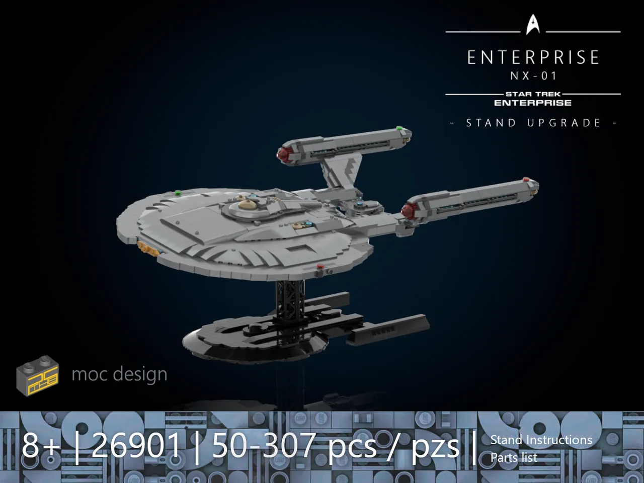This is a conversion guide for the stand of the BLUEBRIXX 105437 ENTERPRISE NX-01 display version. The original model is required.