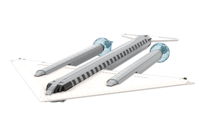 The MiniHurley is a resquian shuttle aircraft with a length of 45 meters and a width of 30 meters. It is capable of reaching Mach 2 and connects all of the Reque bases around the globe. It is also used to bring clone legions to their area of operation as quickly as possible. This model shows the aircraft in UCS style. The model has a display stand, retractable undercarriage and a removable roof to see into the passenger cabin.