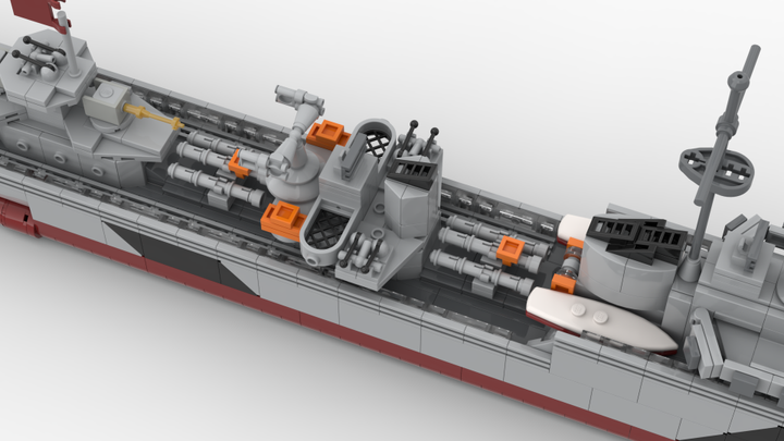 The “Z-43” was a german destroyer of World War II. Finished in Mai 1944, she only was used in the baltic sea. Shes a little modified sister ship from the Z-39, she has five 12.7 cm-mainguns in five turrents.