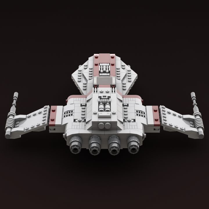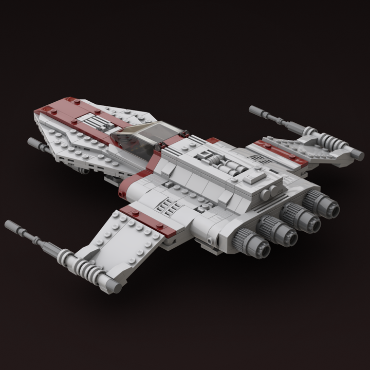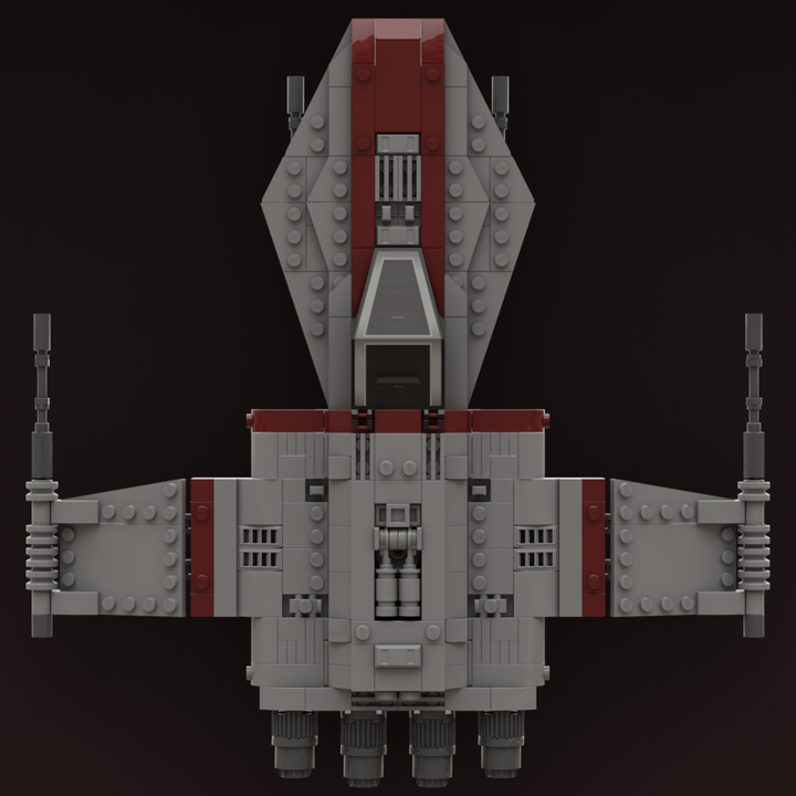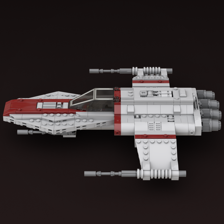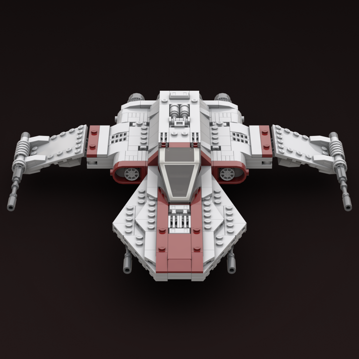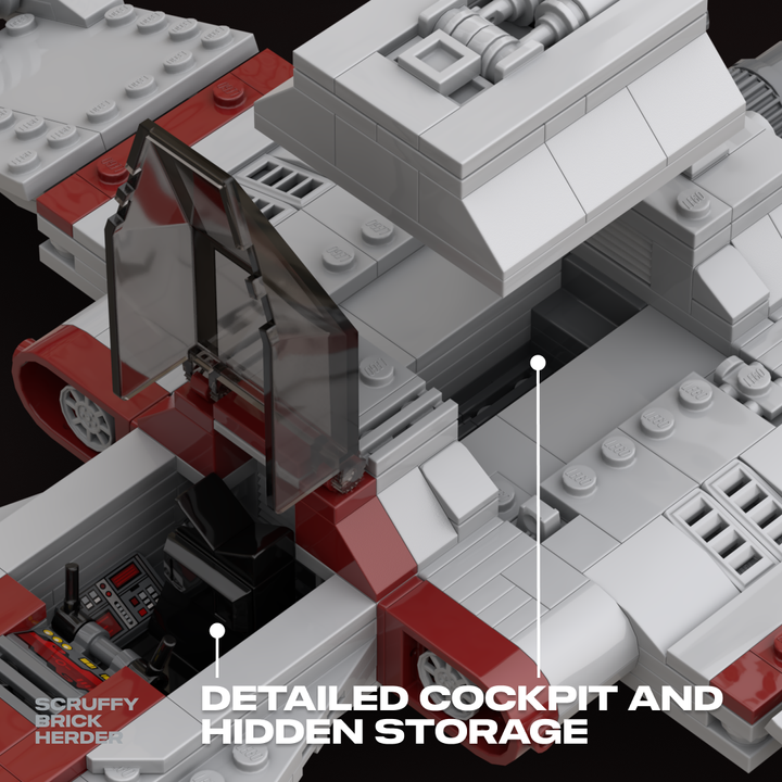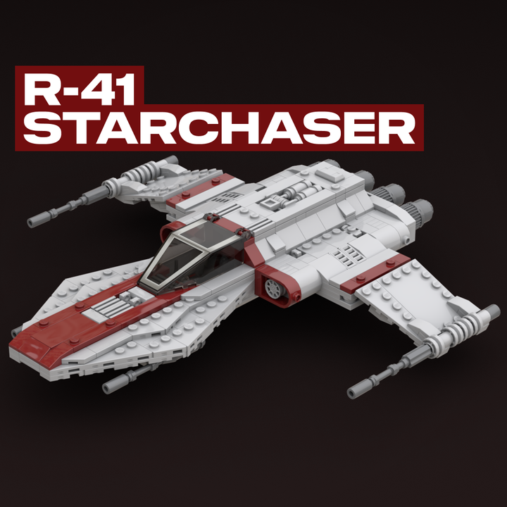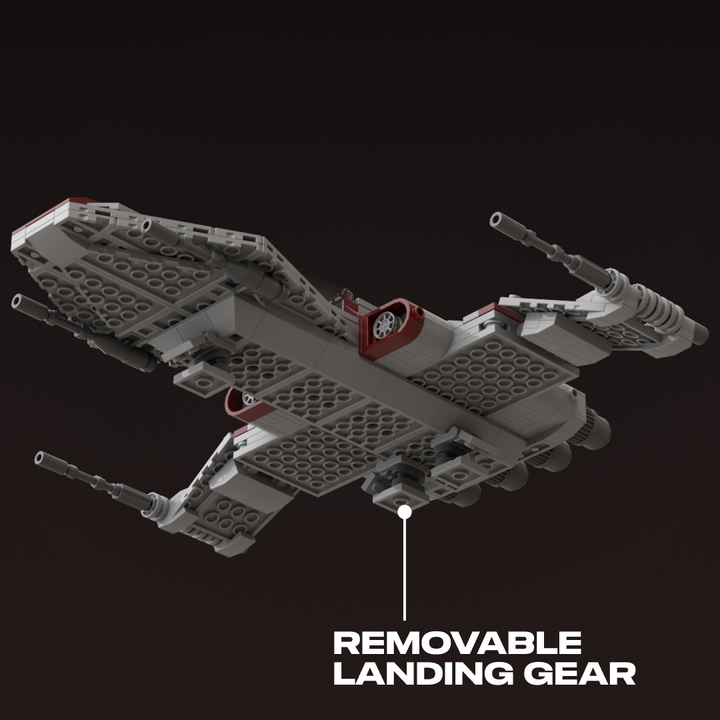 I studied many illustrations and in-game references to recreate the R-41 Starchaser in LEGO. The nose carries a sharp profile, the fuselage has a full body that flows to the rear, and the cockpit, engines, and cannons have all been carefully shaped for accuracy. I also integrated removable landing gear and incorporated an internal storage compartment. I’ve built this version in real bricks to confirm it’s sturdy, balanced, and fully swooshable.