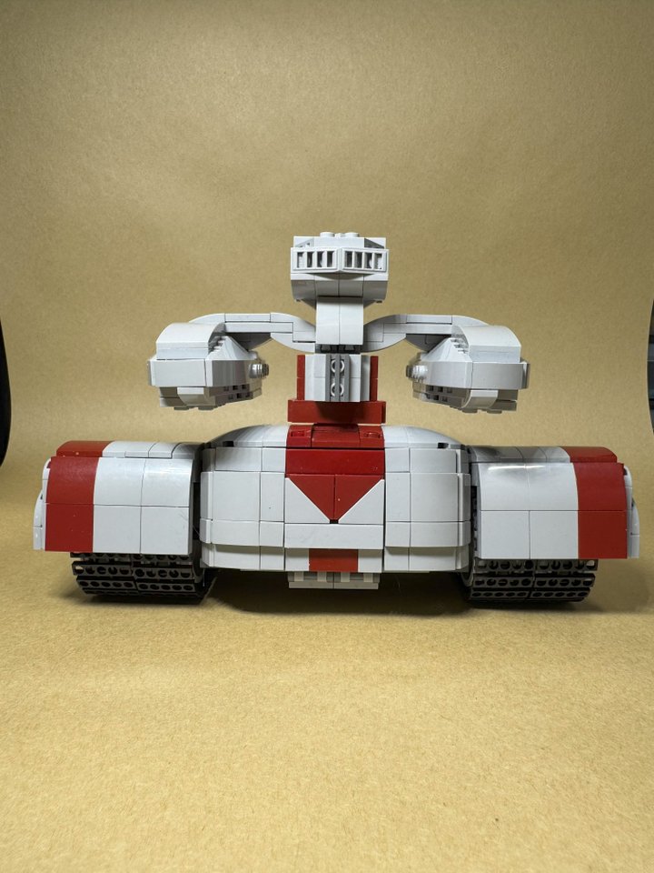 This build features poseable cannons that can swivel 360 degrees, work treads, and a detailed cockpit and main cabin!