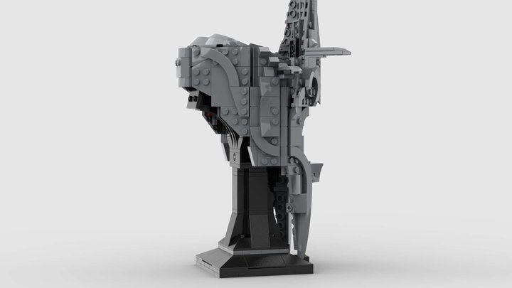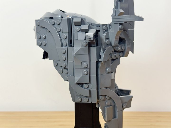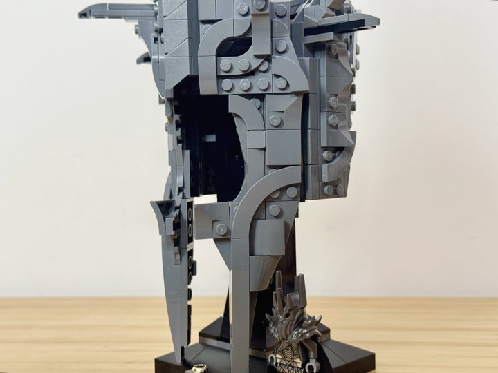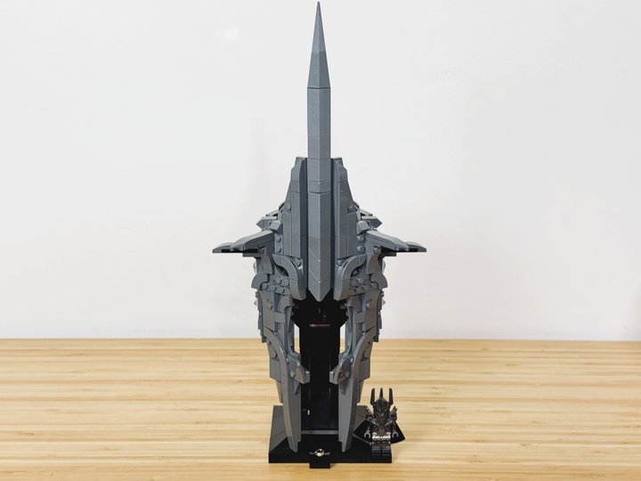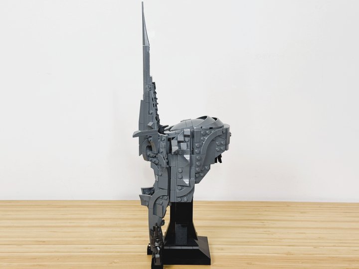 Instead of the Sauron name plate, I placed the Ring on a jumper plate at the base of the stand, symbolising how the Nazgul are enslaved to Sauron through the Ring. I am very pleased with how this rendition turned out using only the pieces from Sauron’s helmet. Its brutal dark presence is something you can feel from across the room.