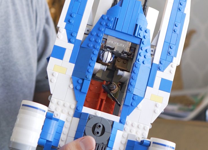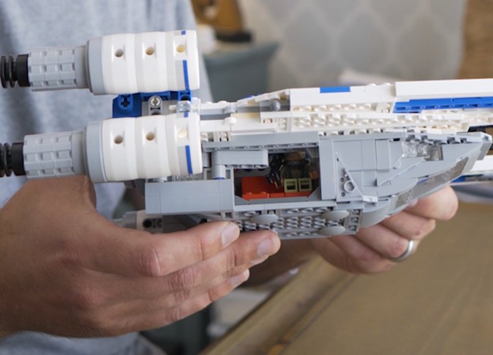 This U-Wing design can be built as a Blue Squadron ship, Andor’s White U-Wing, or Partisan U-Wing. It can sit two pilots in the cockpit and a row of bench seats in the back for four passengers. The doors and wings of the ship function very similarly to the 2016 Lego set, but are also much improved and more accurate. See my comprehensive video here.