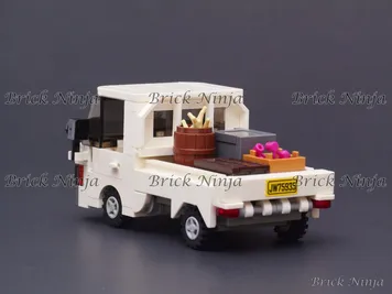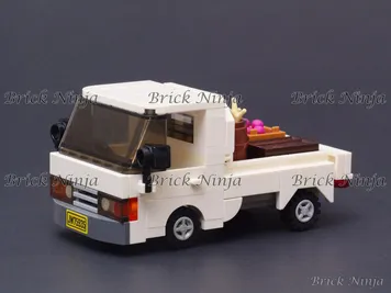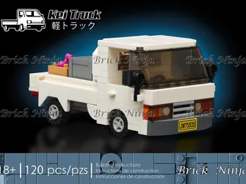 Kei trucks are a style of light vehicle pickup truck. They can be no more than 3.4 m (11.2 ft) long and 1.48 m (4.9 ft) wide. This is a minifig scale version of a kei truck. They are most commonly white, but can come in any color. Kei trucks were first introduced in Japan in 1959 and have since been widely used throughout Asia. Kei trucks are very popular in farming allowing someone to haul quite a bit with a fairly small vehicle.