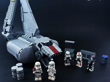 A Sentinel-class landing craft was utilized by Task Force 99, also known as SCAR Squadron, an elite stormtrooper squad of the Galactic Empire.