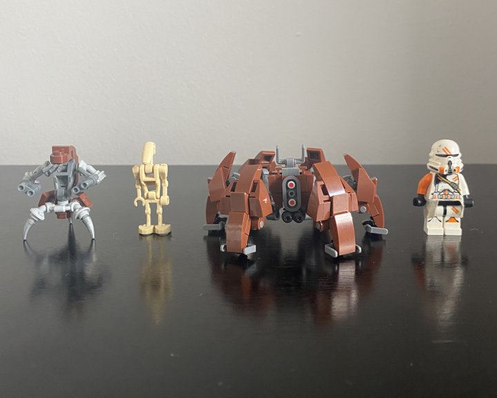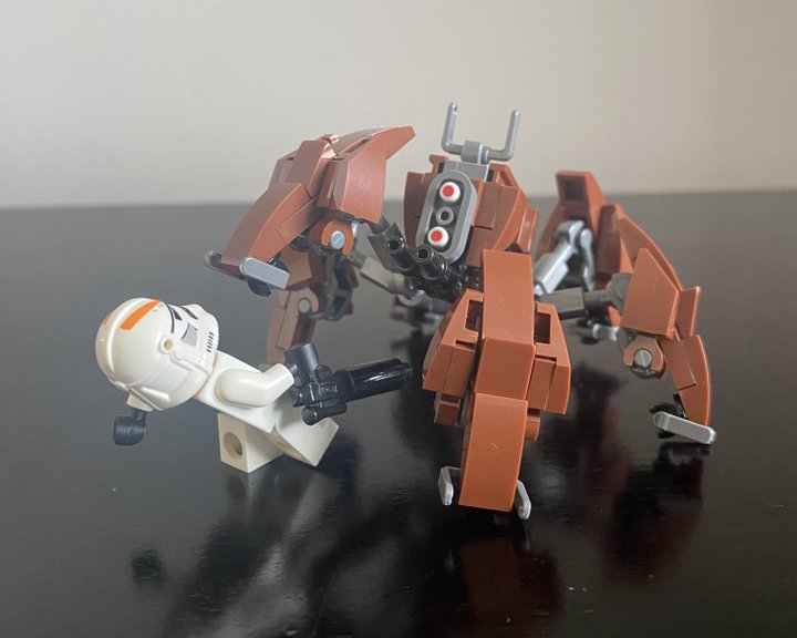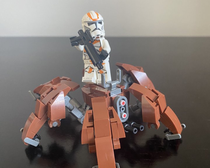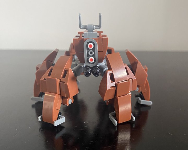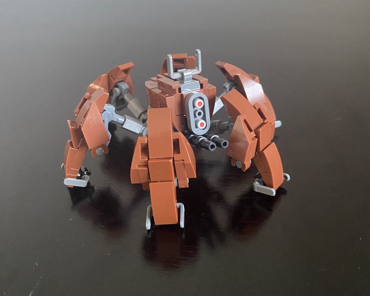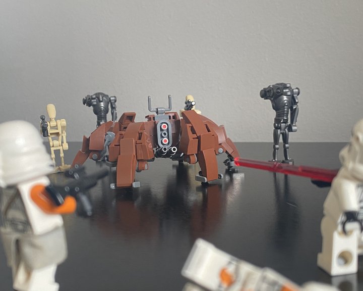 This is my custom Crab Droid design, I tried to make it as accurate as I could to what we see in Revenge of the Sith. It six legs with three points of articulation, two guns positioned under then head and is pretty much minifig scale!