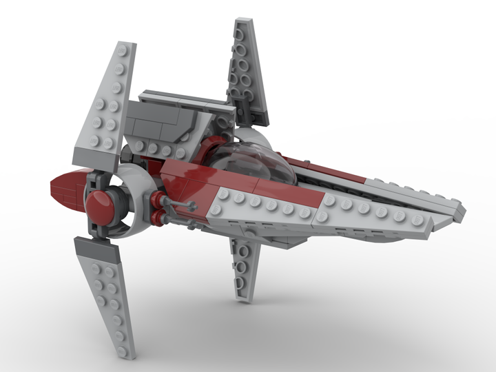 Is able to land in the configuration seen in Revenge of the Sith and Battlefront 2 2017 by shifting the round 1x1 bar with handles against the rounded 1x2. Best way to do this is detaching the panel hubs from the build and reattaching in the preferred configuration.