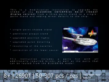 This is a conversion guide for the stand of the BLUEBRIXX 105437 ENTERPRISE NX-01 display version. The original model is required.