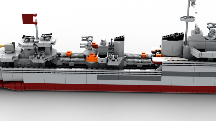 She was layed down in 1940 and completet in 1943. This model shows her in a late war-version with a heavier anit-aircraft arament.