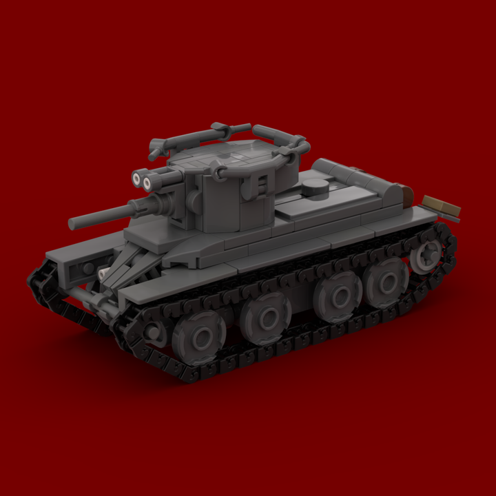 This is the BT-5, a soviet fast light tank featuring the early turret Built at 1/45 scale to go perfectly with the scale of the minifigs