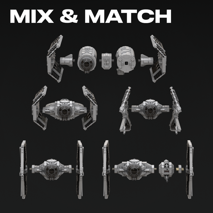 I’ve designed seven custom TIE variants that share a standardized 3-pin connection point between wings and pods, allowing you to freely swap parts between ships to create alternate configurations and custom builds. Learn more about the Modular TIE Series on my Patreon