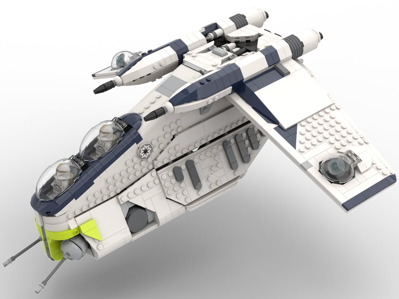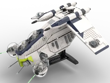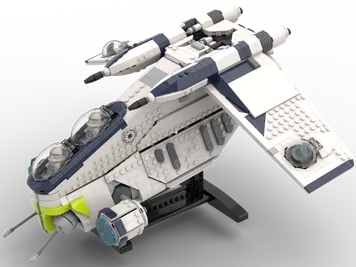In the scale of the 2023 gunship with inspiration from the official LEGO UCS Republic Gunship model and Star Wars ILM movie prop and Clone Wars animated series references. Fully remade from the ground up as of March 23rd, 2026 in a much more eye catching and accurate portrayal of the original source material from Lucasfilm. Custom building instructions, Stud.io design file and parts list files included with purchase.