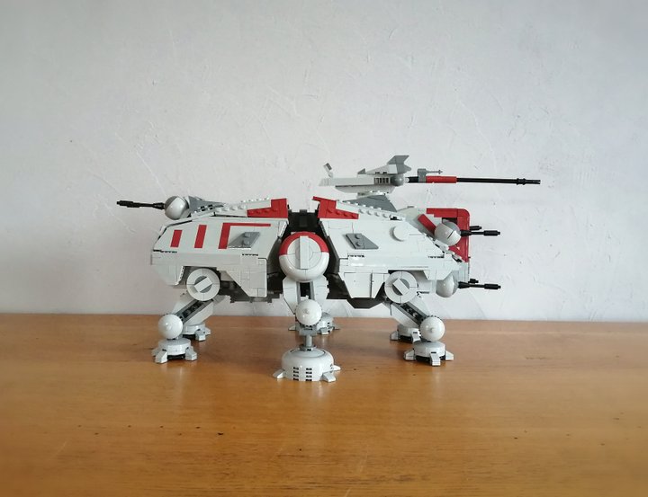 I designed this model starting with the base of the 2022 AT-TE Lego set, the internal structure and technics for the top of the legs, and the mechanism to make them work is the same as the Lego set, however, everything else has been completely reworked, and designed by myself, to make it more accurate to what we see in The Clone Wars TV show. It’s also two studs longer than the 2022 Lego AT-TE.