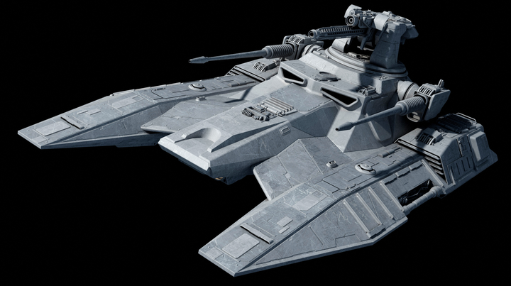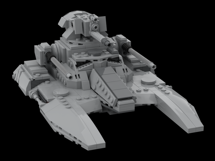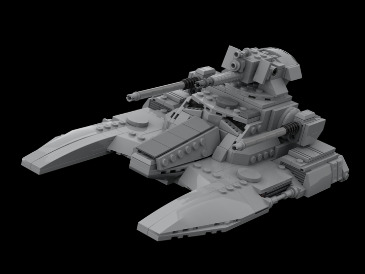This vehicles is based on concept art designed by Fractal Sponge. Using the TX-130 model and aspects of the Empire at War 2M saber he combined them together to make this version of the tank. His version resembles a TX-130 more then the EaW Saber and keeps the TX-130s side sponsons. The vehicle has the same crew loadout as the 2M saber holding a crew of 2.